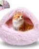 Cat Beds for Indoor Cats,Cat Cave for Puppy and Kitty,Calming Small Dog Bed for Small Dogs with Cover Cave,Cozy Warming Fluffy Washable Anti-Slip Pet Sleeping Bag(24 * 24inch,Light Pink)