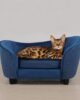 Pet Sofa Bed, Velvet & Linen Fabric Pet Couch Chair with Removeable & Washable Cushion for Small Dogs Cats (Blue)
